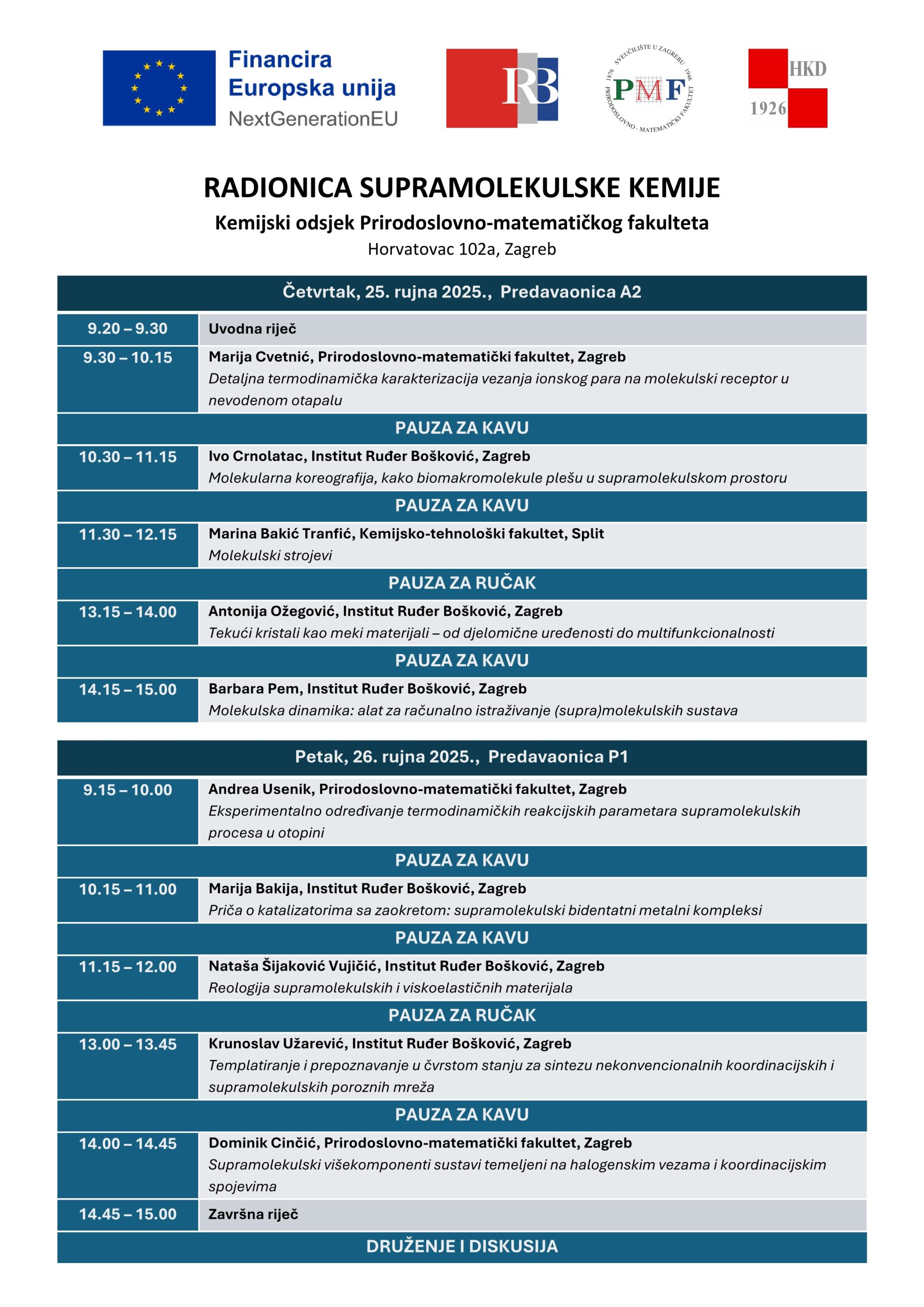 The workshop will take place at the Department of Chemistry, Faculty of Science, Zagreb (Horvatovac 102a) on 25–26 September 2025. The language of the workshop is Croatian. It is primarily intended for students, PhD candidates, and postdoctoral researchers, but is open to anyone interested in expanding their knowledge and exploring different aspects of supramolecular chemistry. […]